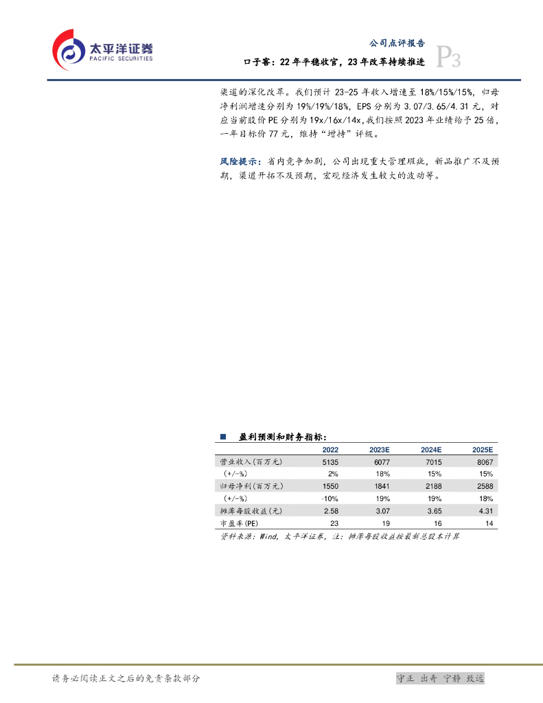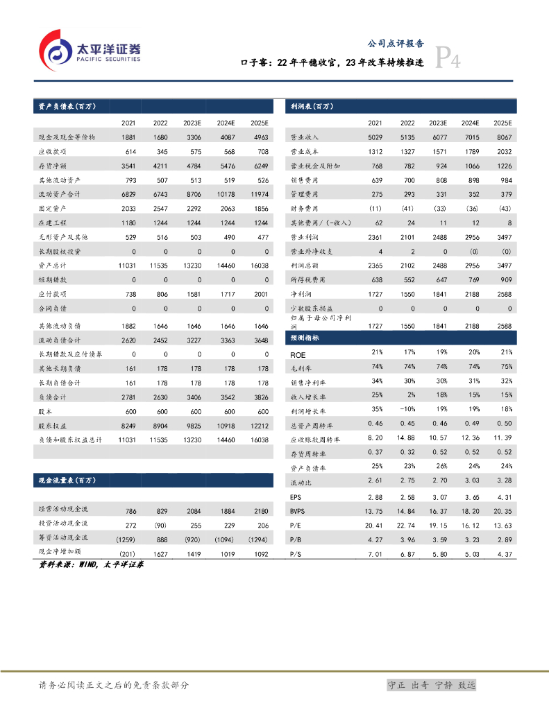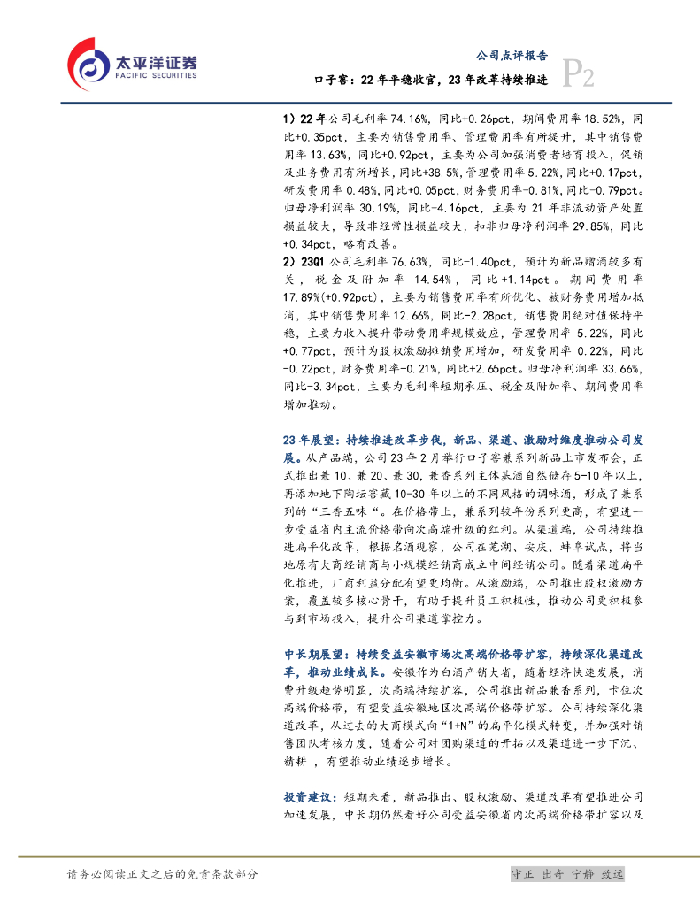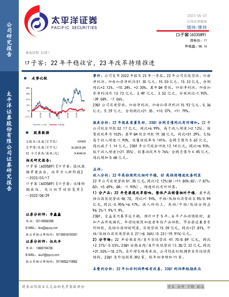 太平洋证券:口子窖:22年平稳收官,23年改革持续推进.pdf