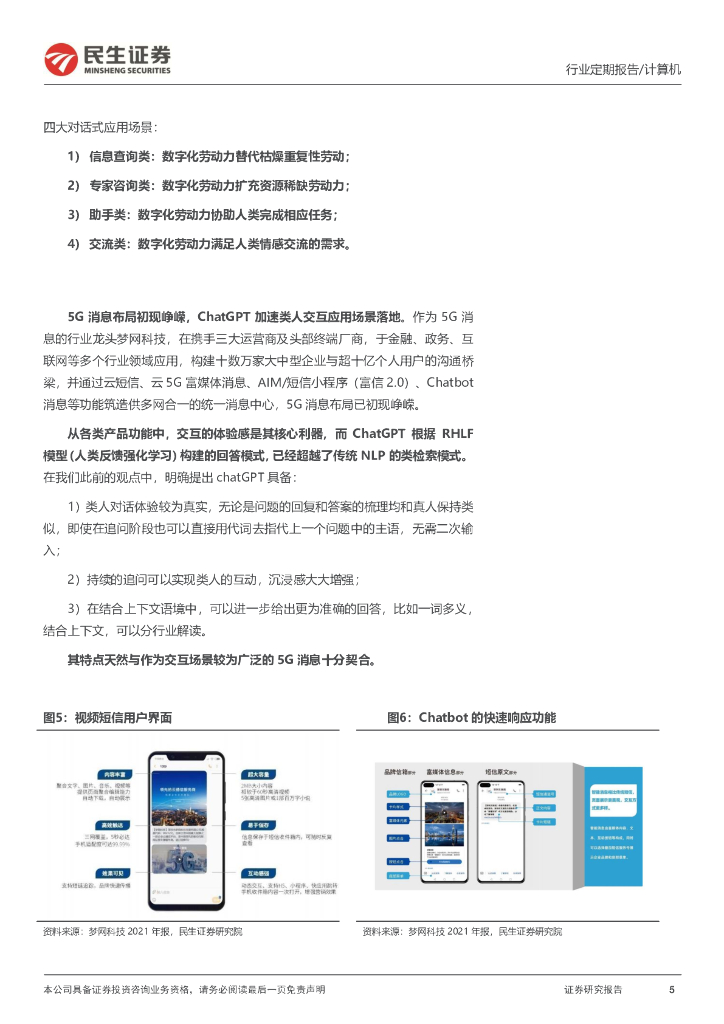民生证券:计算机周报:ChatGPT有望带来5G消息的业务重构.pdf