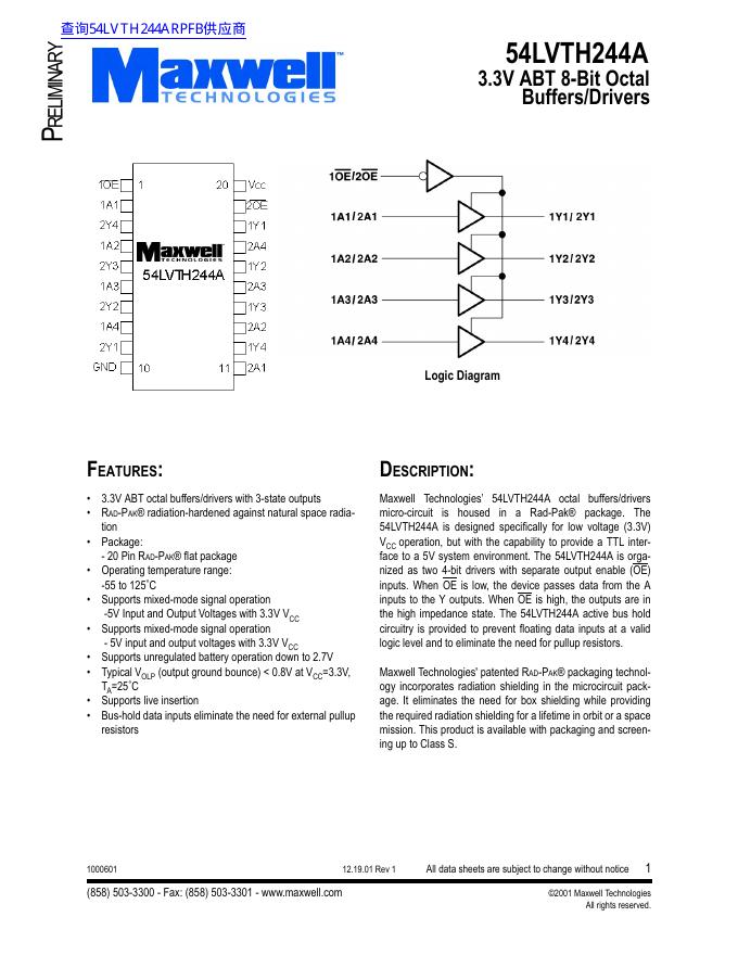 Maxwell TECHNOLOGIES 54LVTH244A 数据手册.pdf