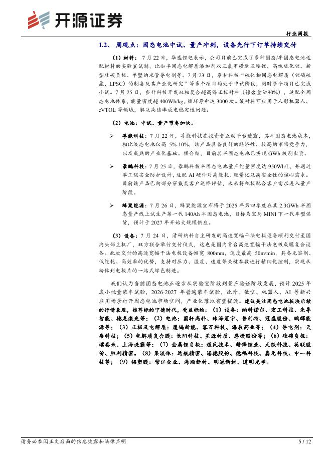 开源证券:电力设备行业周报:固态电池行业周报(第七期):固态电池材料持续取得突破,电池中试节奏加快.pdf