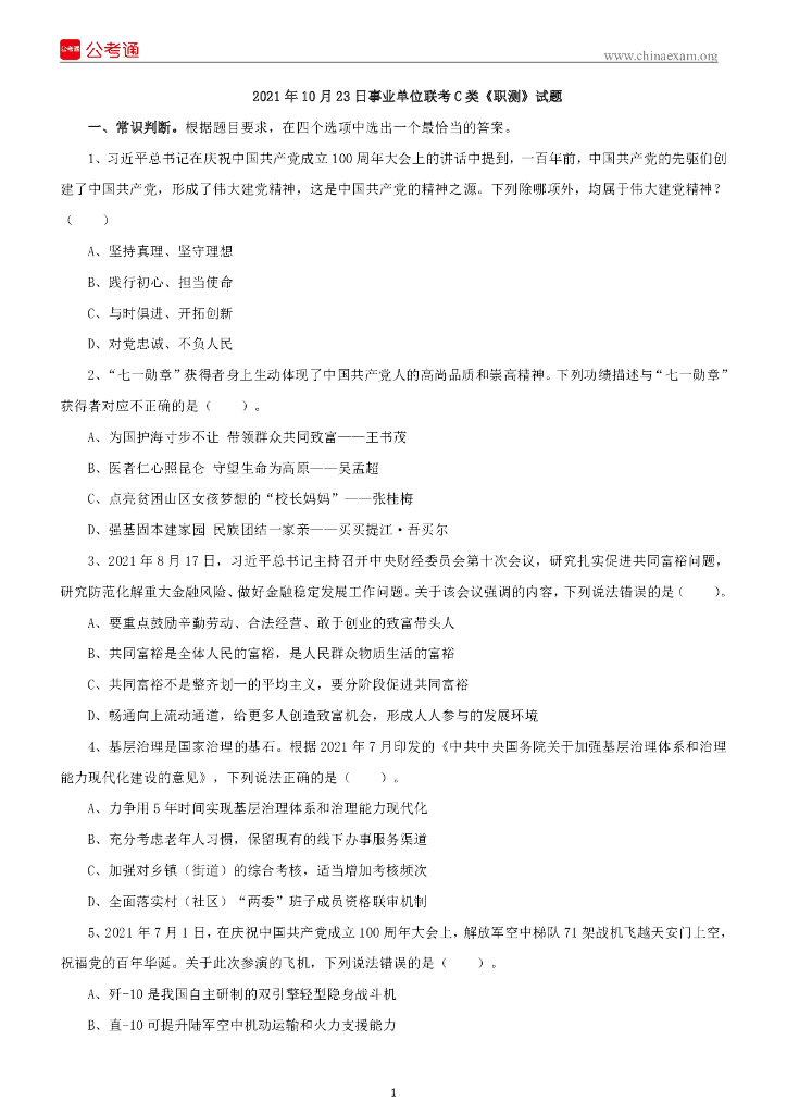 2021年10月23日事业单位联考C类《职测》试题.pdf