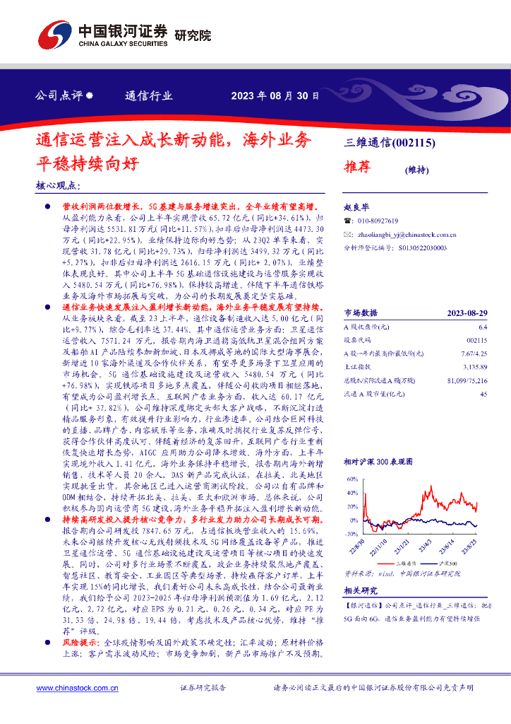 中国银河:三维通信(002115)-通信运营注入成长新动能,海外业务平稳持续向好.pdf