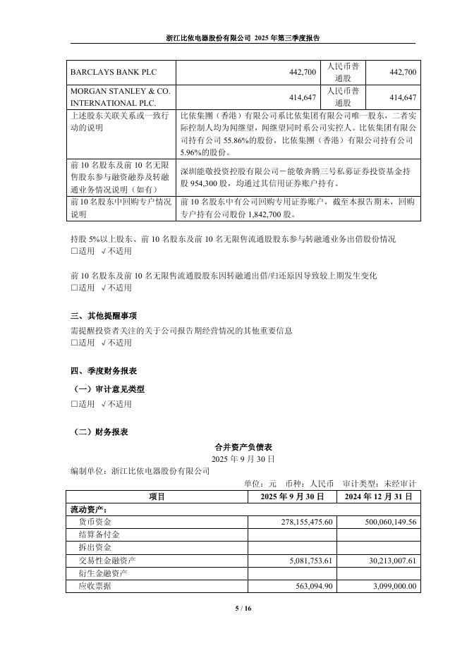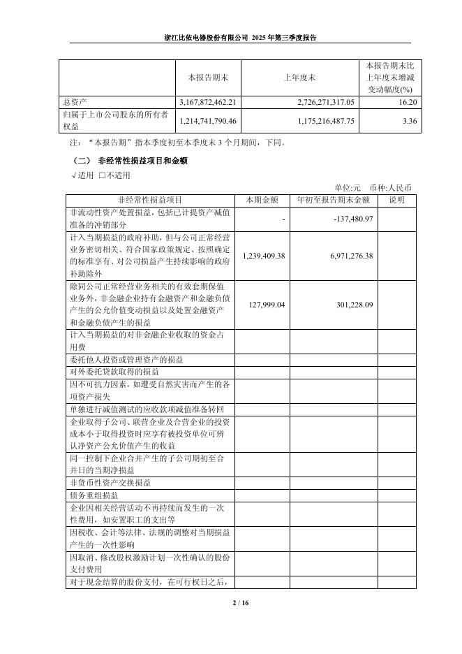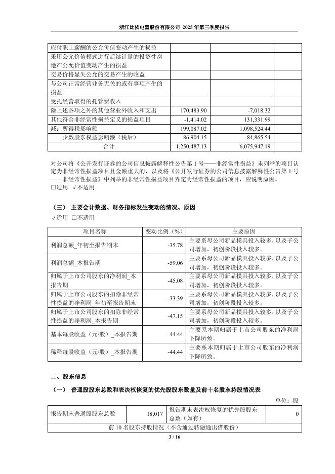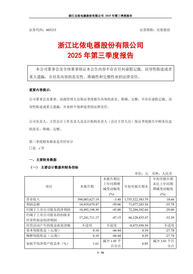 603215-比依股份:浙江比依电器股份有限公司2025年第三季度报告.pdf