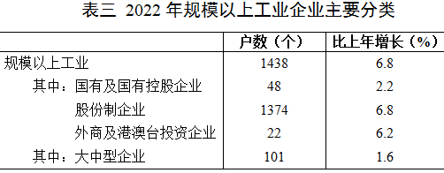 全年1438家规模以上工业企业实现增加值比上年增长6.8%。九大主要行业增加值占全部规模工业的89.5%,增长7.1%,增速比全市平均水平高0.3个百分点;955家市级及以上园区规模工业企业增加值增长7.4%,增速比全市平均水平高0.6个百分点。