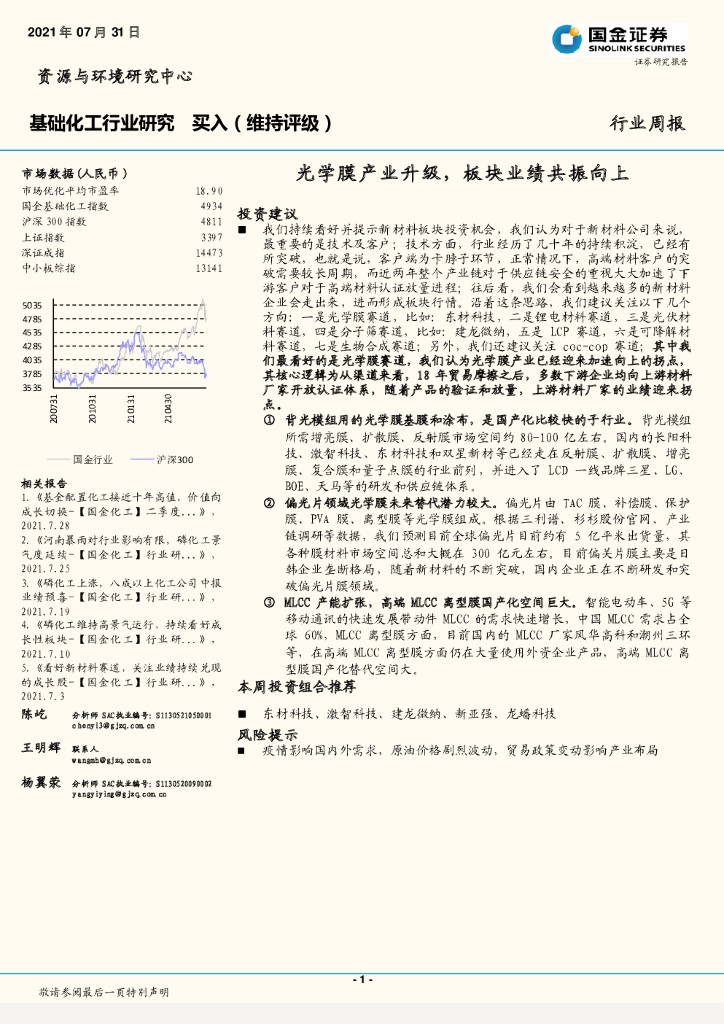 国金证券:基础化工行业研究周报:光学膜产业升级,板块业绩共振向上.pdf