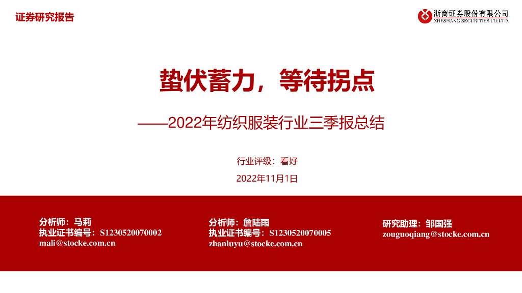 浙商证券:2022年纺织服装行业三季报总结:蛰伏蓄力,等待拐点.pdf