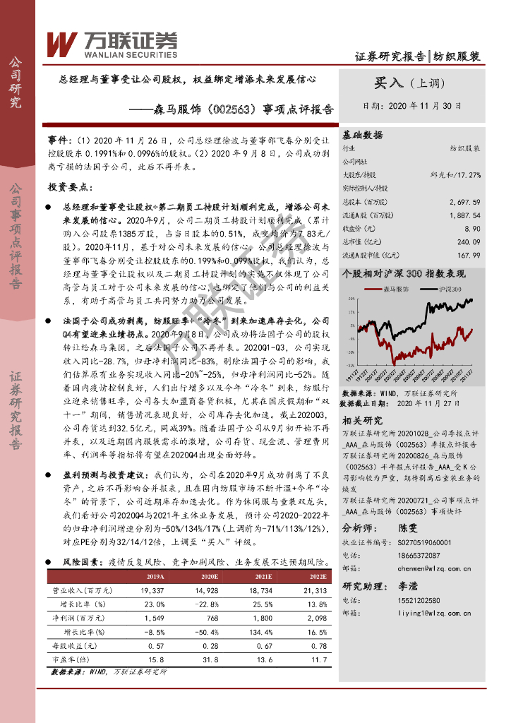 万联证券:森马服饰(002563)-总经理与董事受让公司股权,权益绑定增添未来发展信心.pdf