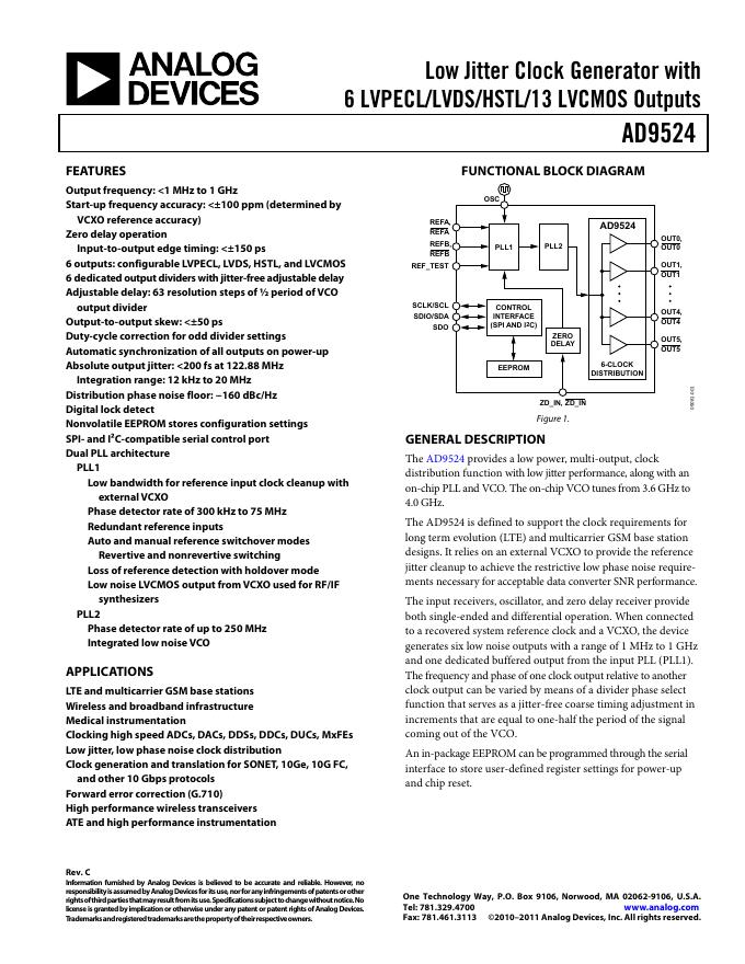 ANALOG DEVICES AD9524 英文产品数据手册.pdf