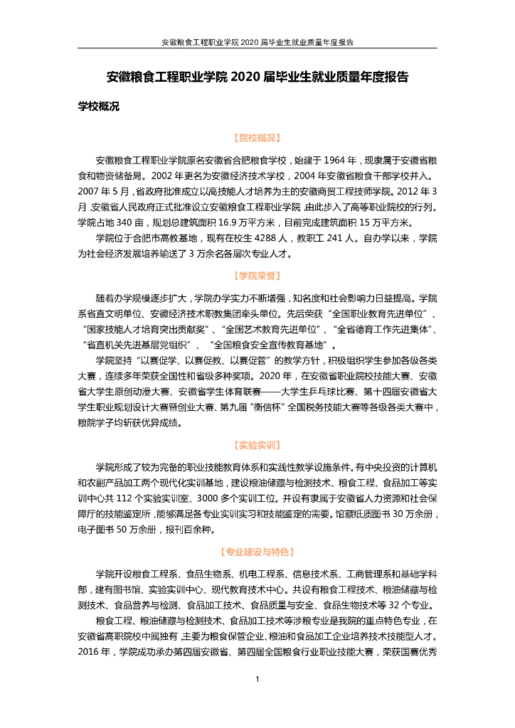 安徽粮食工程职业学院2020届毕业生就业质量报告.pdf