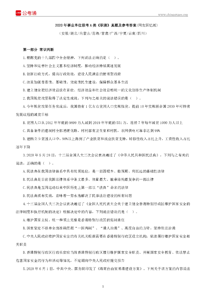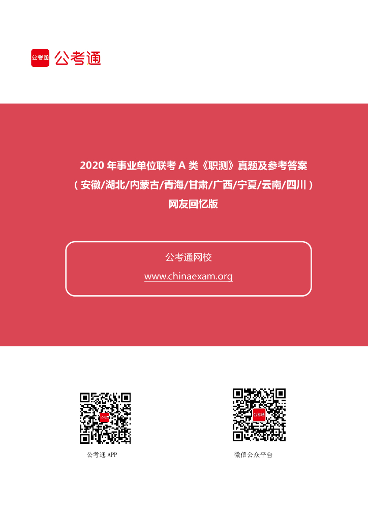 2020年事业单位联考A类《职测》真题及参考答案.pdf