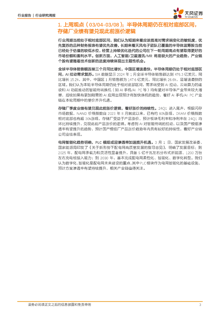 天风证券:半导体行业研究周报:半导体周期仍在相对底部区间,存储厂业绩有望兑现此前涨价逻辑.pdf