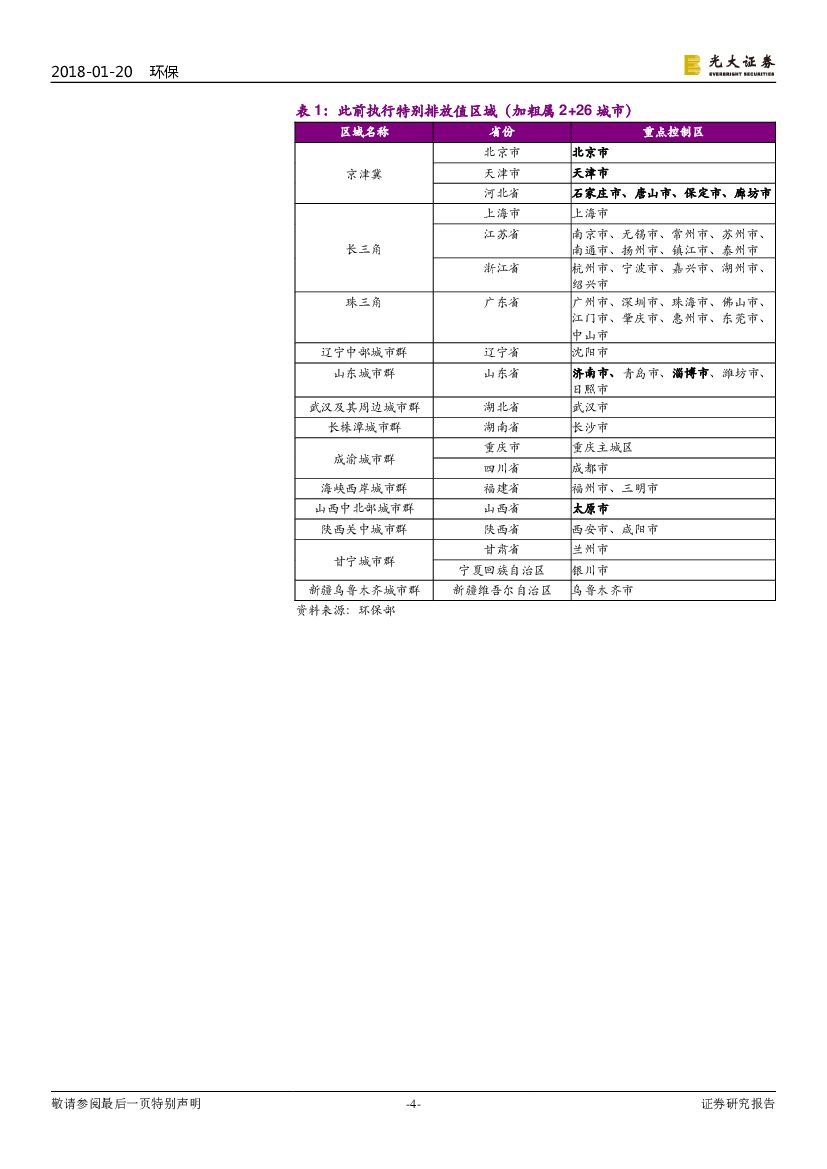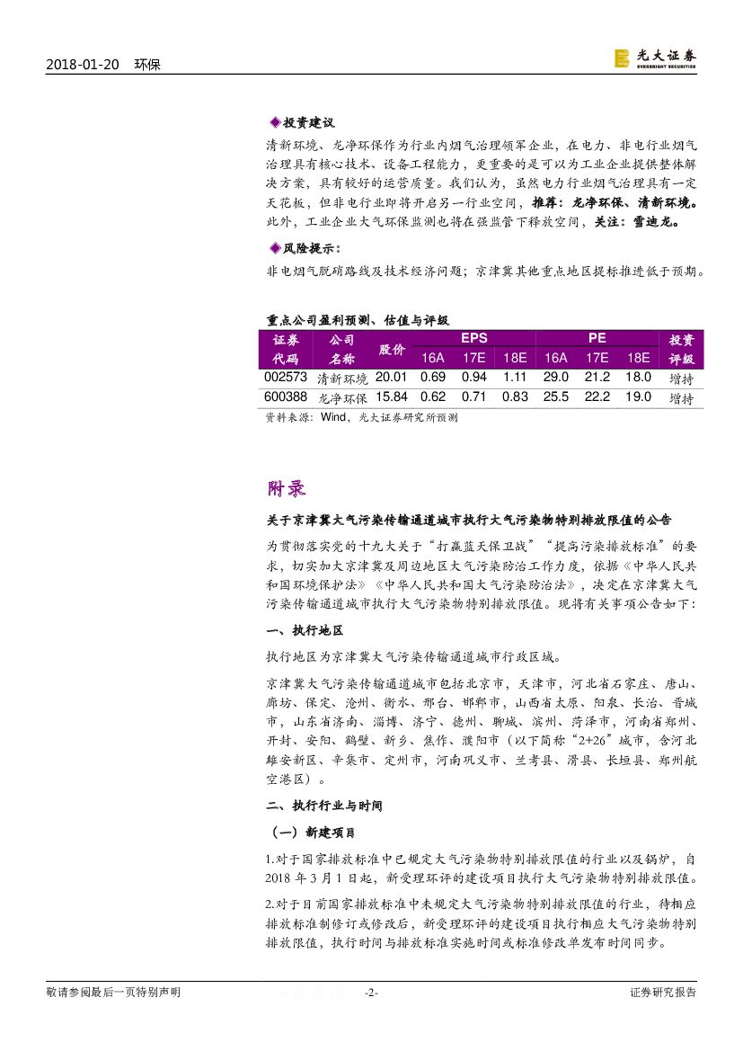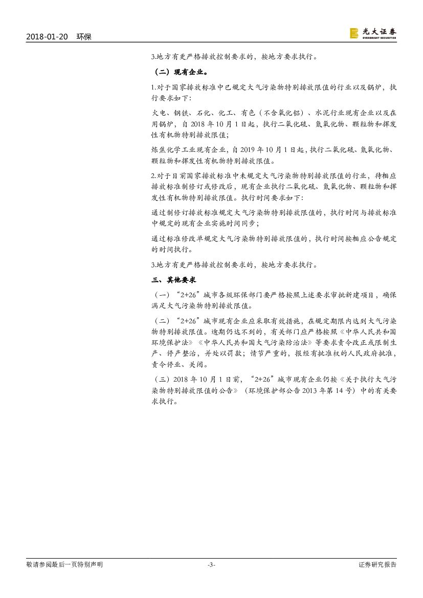 光大证券:环保行业简报:非电大气持续发酵:“2+26”执行大气污染物特别排放值.pdf