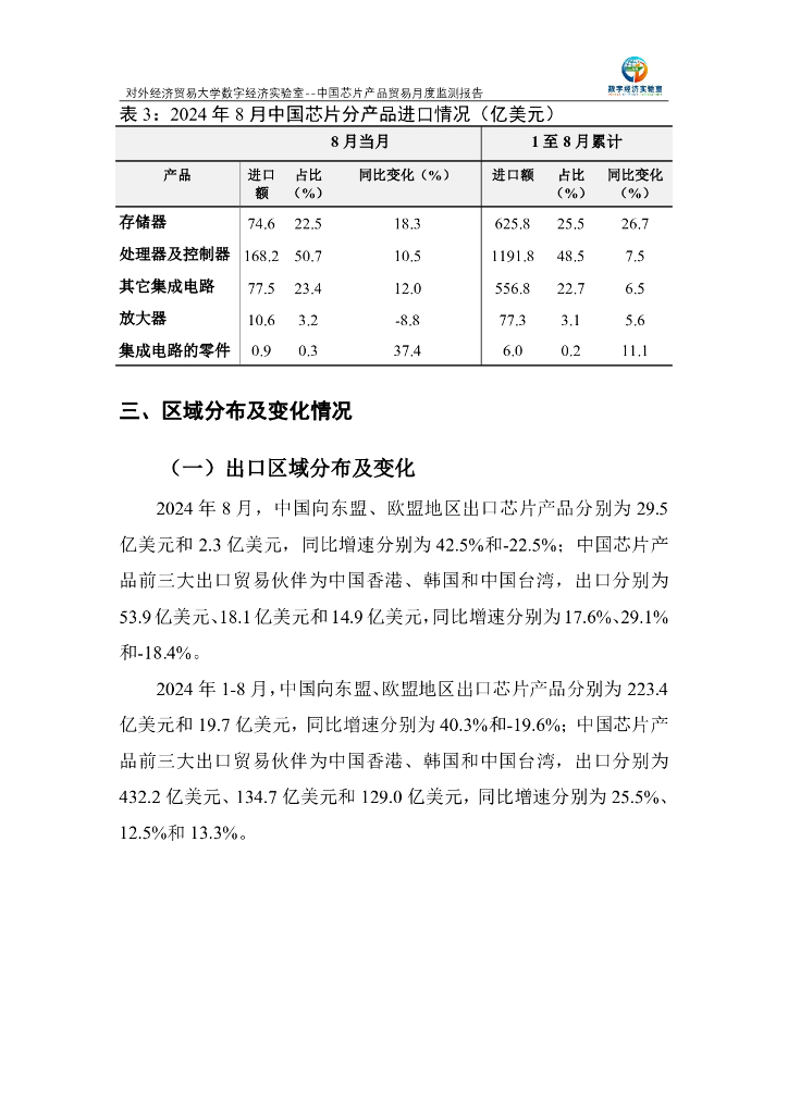 对外经济贸易大学:中国芯片产品贸易月度监测报告(2024年1-8月).pdf
