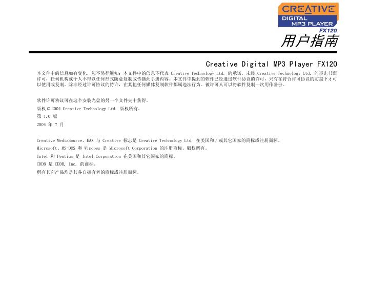 CREATIVE DIGITAL MP3 PLAYER FX120 用户指南.pdf