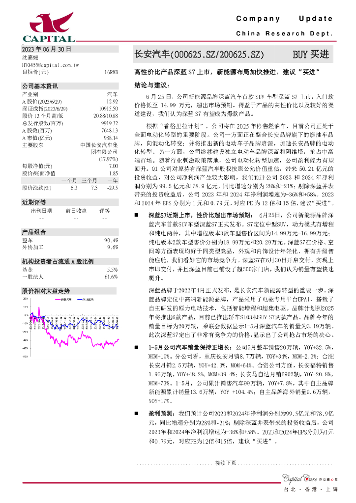 群益证券:长安汽车(000625)-高性价比产品深蓝S7上市,新能源布局加快推进,建议“买进”.pdf