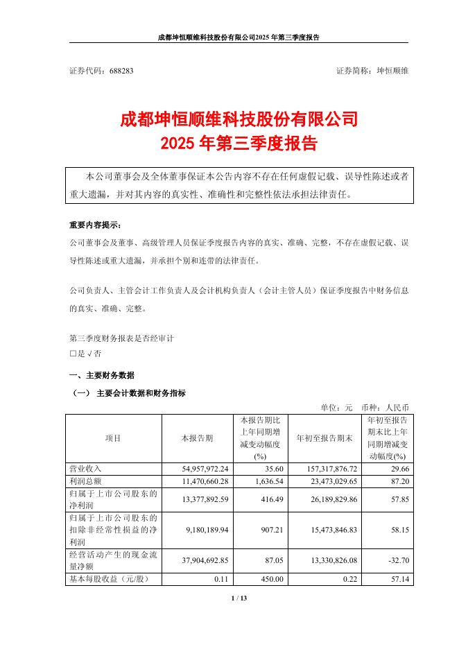 688283-坤恒顺维:成都坤恒顺维科技股份有限公司2025年第三季度报告.pdf