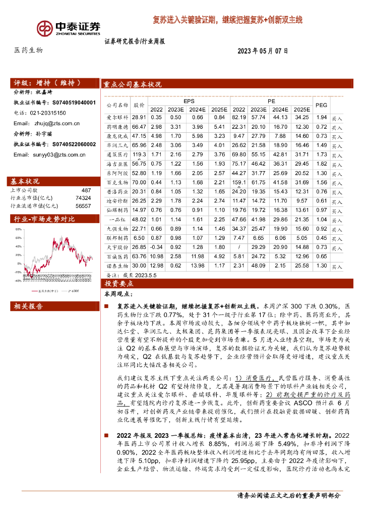 中泰证券:医药生物行业周报:复苏进入关键验证期,继续把握复苏+创新双主线.pdf