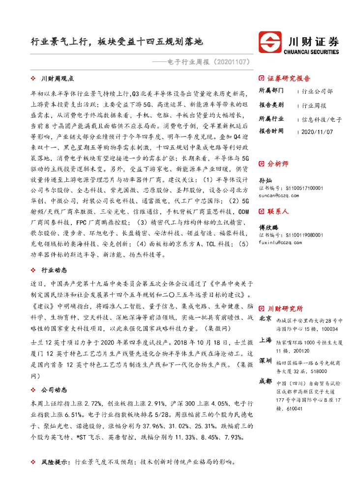 川财证券:电子行业周报:行业景气上行,板块受益十四五规划落地.pdf