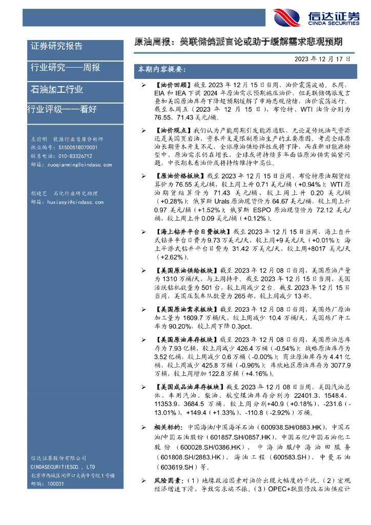 信达证券:原油周报:美联储鸽派言论或助于缓解需求悲观预期.pdf