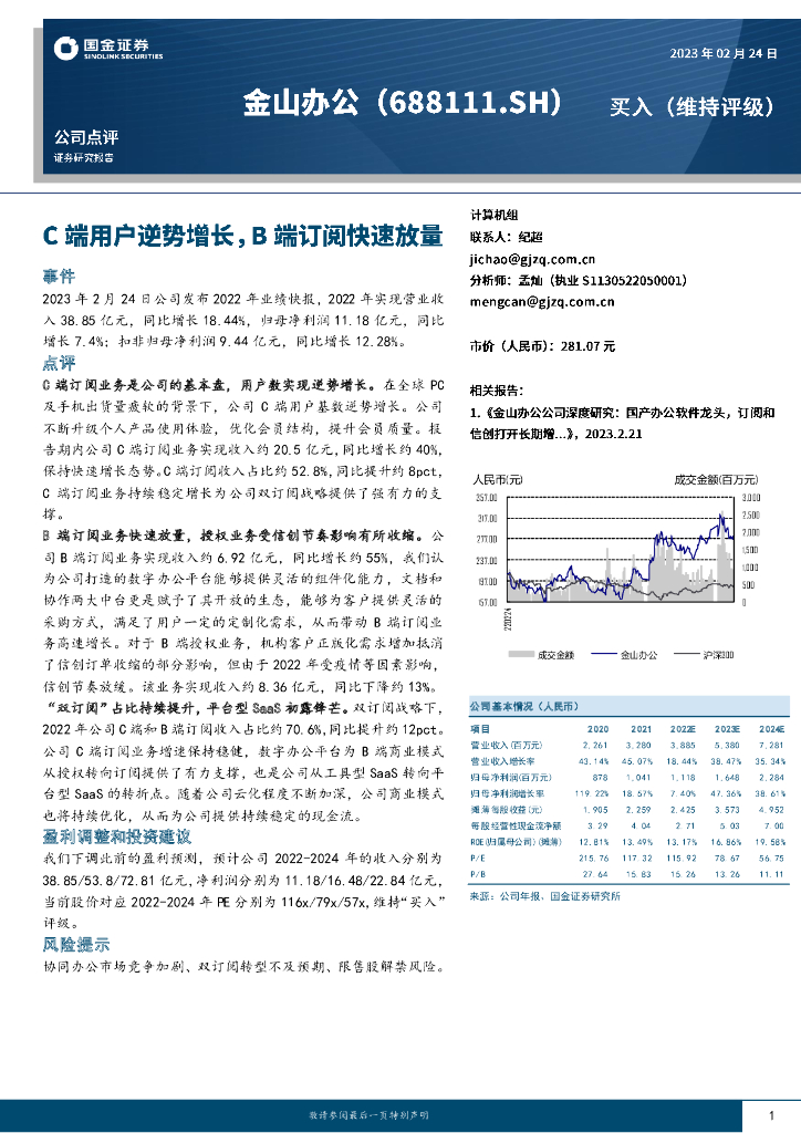 国金证券:金山办公(688111)-C端用户逆势增长,B端订阅快速放量.pdf