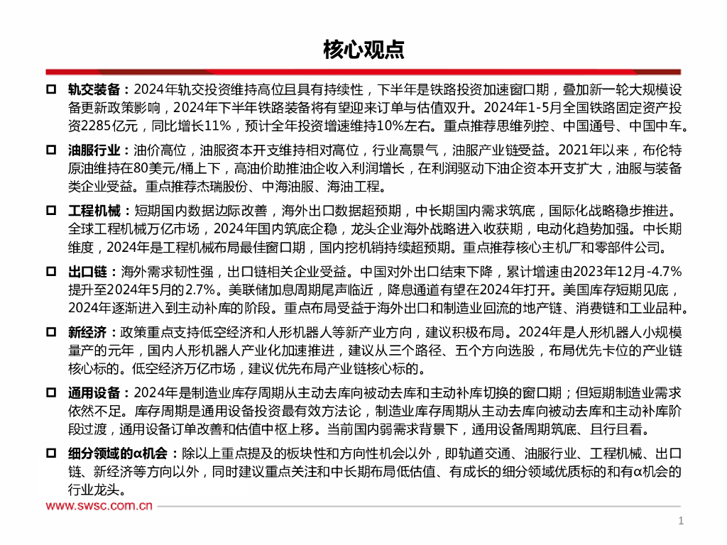 西南证券:机械行业2024年中期投资策略:布局确定性,聚焦新经济.pdf
