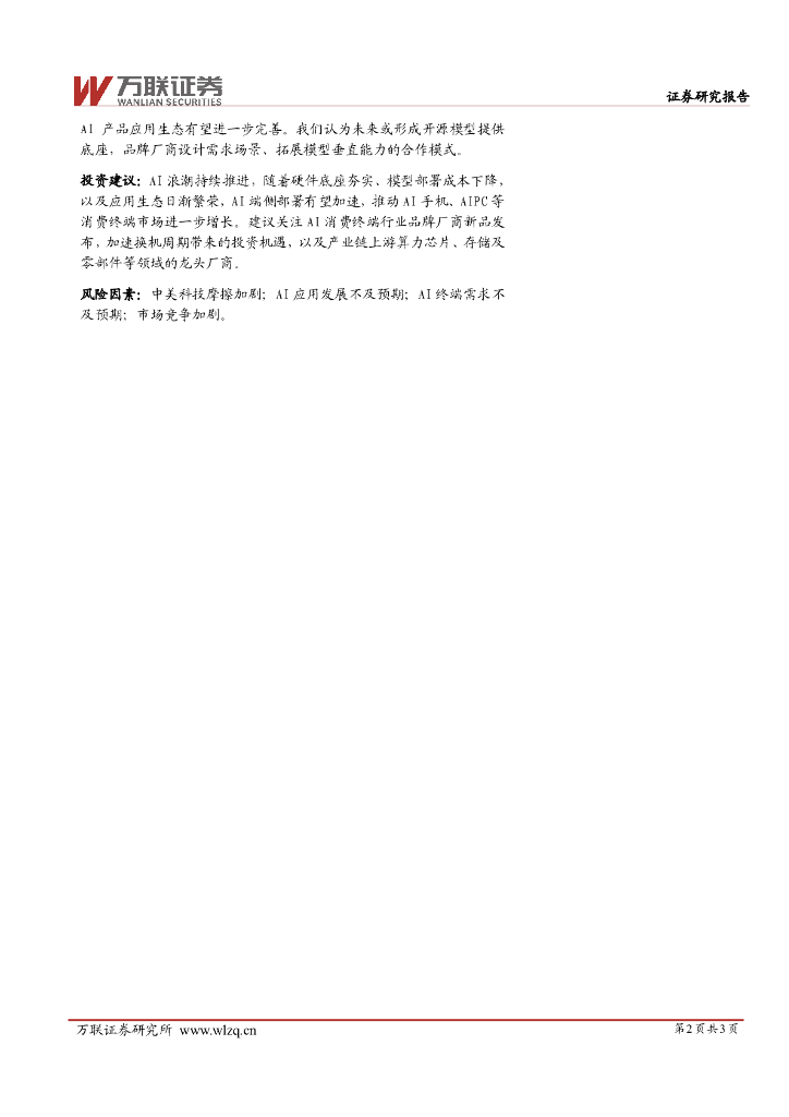 万联证券:电子行业快评报告:消费终端市场持续复苏,DeepSeek有望推动AI端侧部署加速.pdf