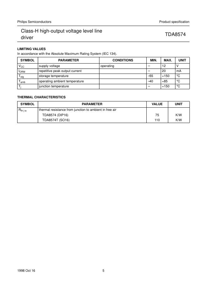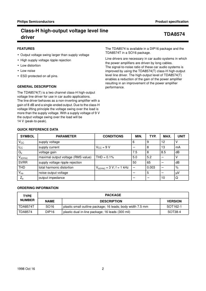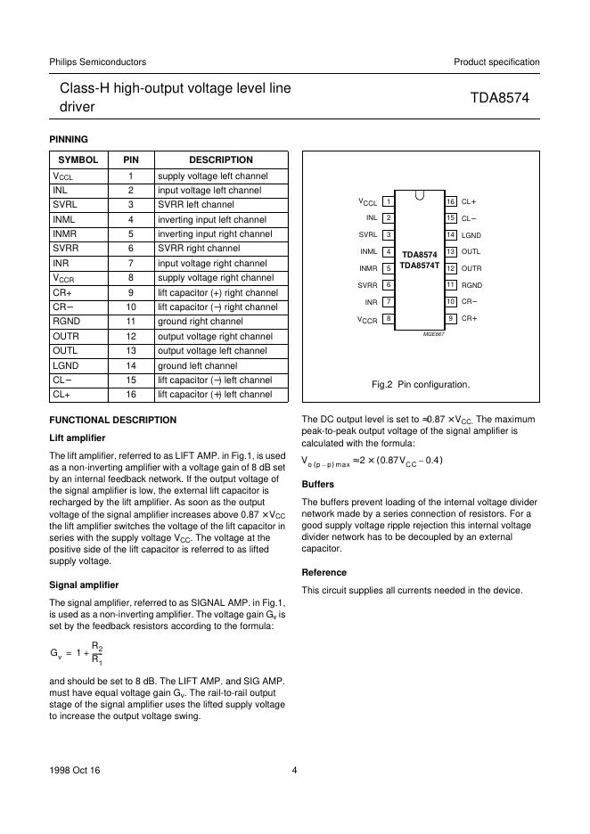 PHILIPS TDA8574 Class-H high-output voltage level line driver 数据手册.pdf