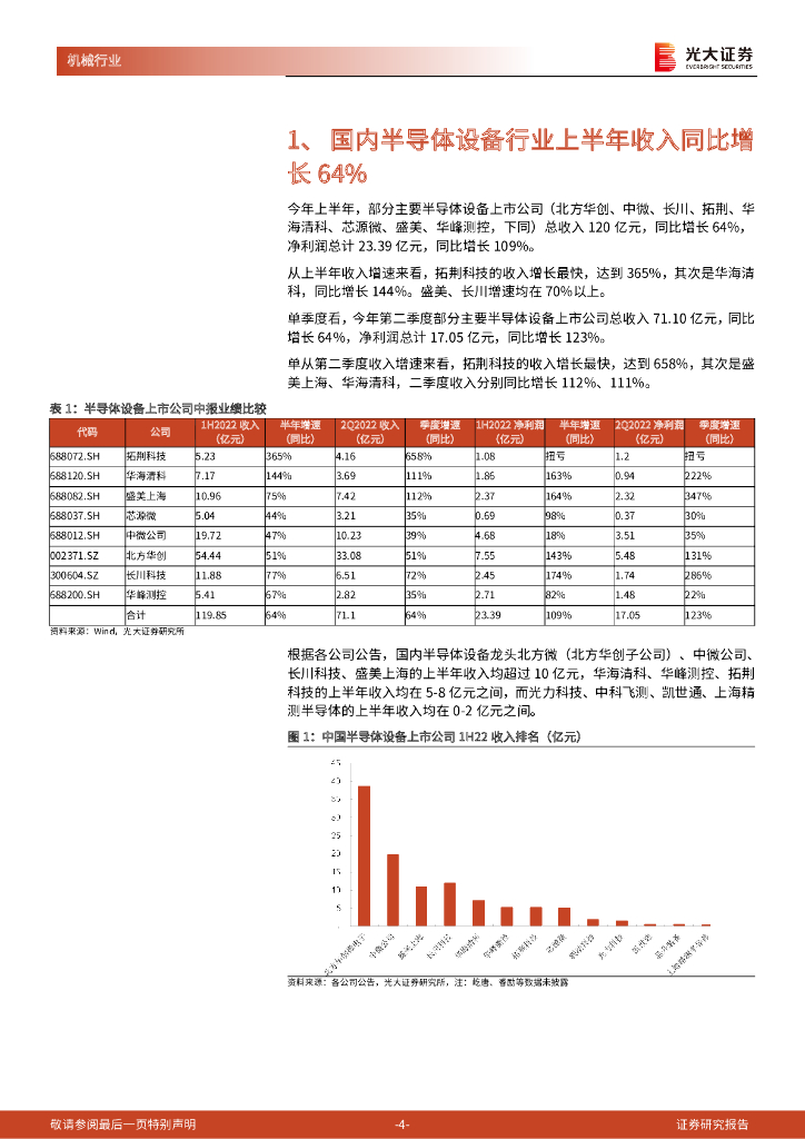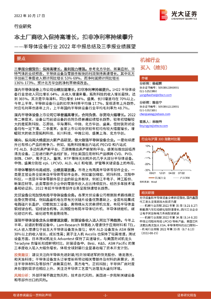 光大证券:半导体设备行业2022年中报总结及三季报业绩展望:本土厂商收入保持高增长,扣非净利率持续攀升.pdf