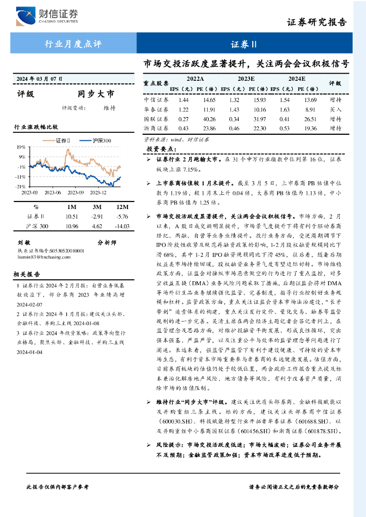 财信证券:证券Ⅱ行业月度点评:市场交投活跃度显著提升,关注两会会议积极信号.pdf