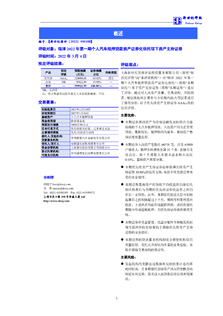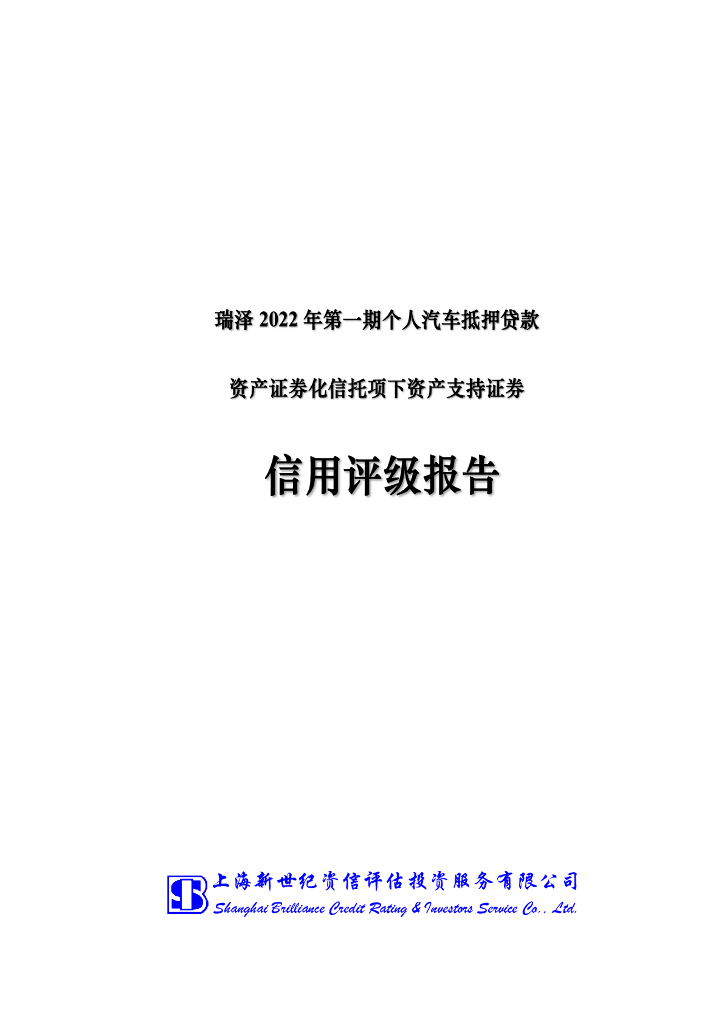 新世纪:瑞泽2022年第一期个人汽车抵押贷款资产支持证券信用评级报告-新世纪.pdf
