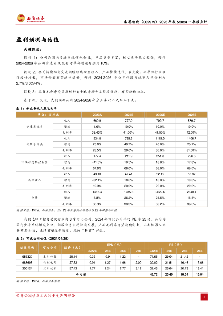 西南证券:雷赛智能(002979)-加速布局人形机器人领域,24Q1净利率提升.pdf