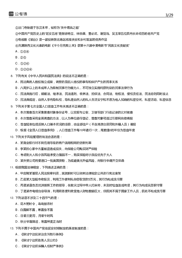 2021年陕西公务员考试行测试题(考生回忆版).pdf