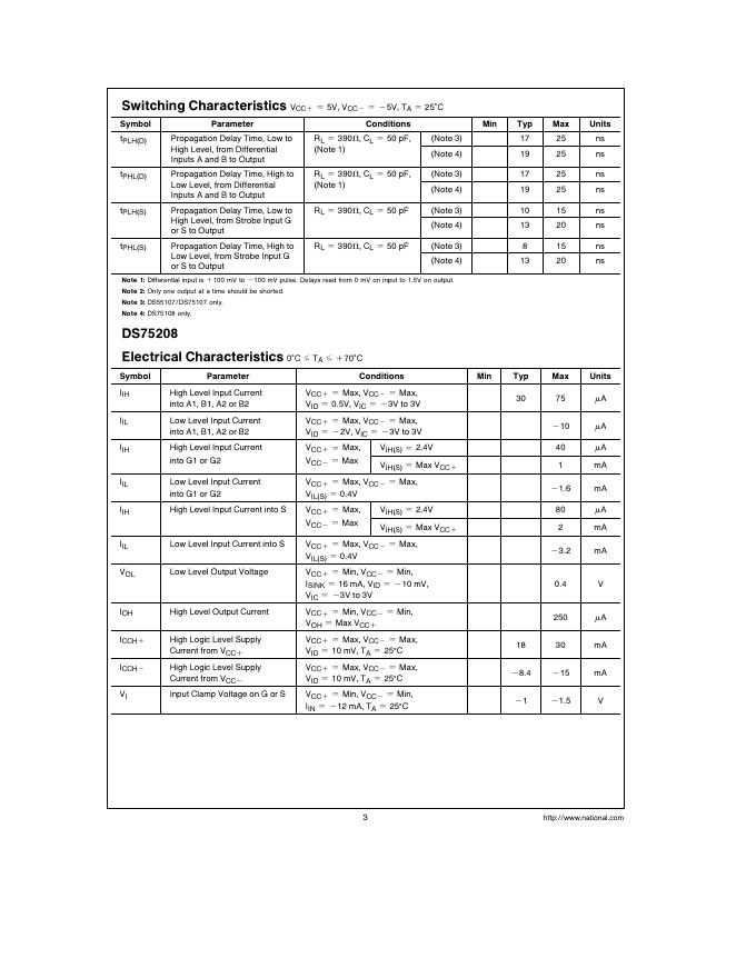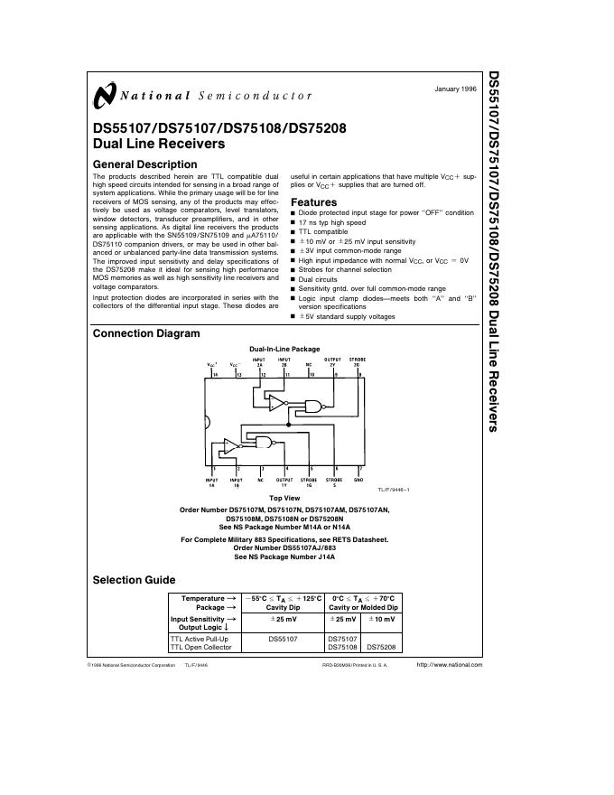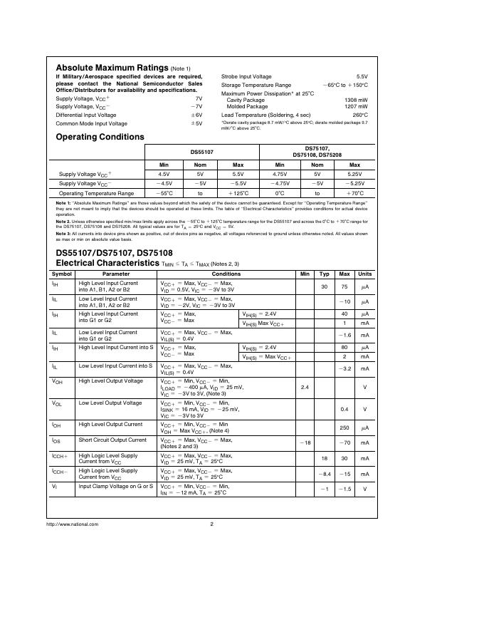 NATIONAL semiconductor DS55107/DS75107/DS75108/DS75208 Dual Line Receivers 使用手册.pdf