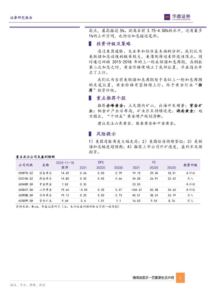 华鑫证券:贵金属动态研究报告:预期美联储加息放缓,看好黄金板块配置价值.pdf