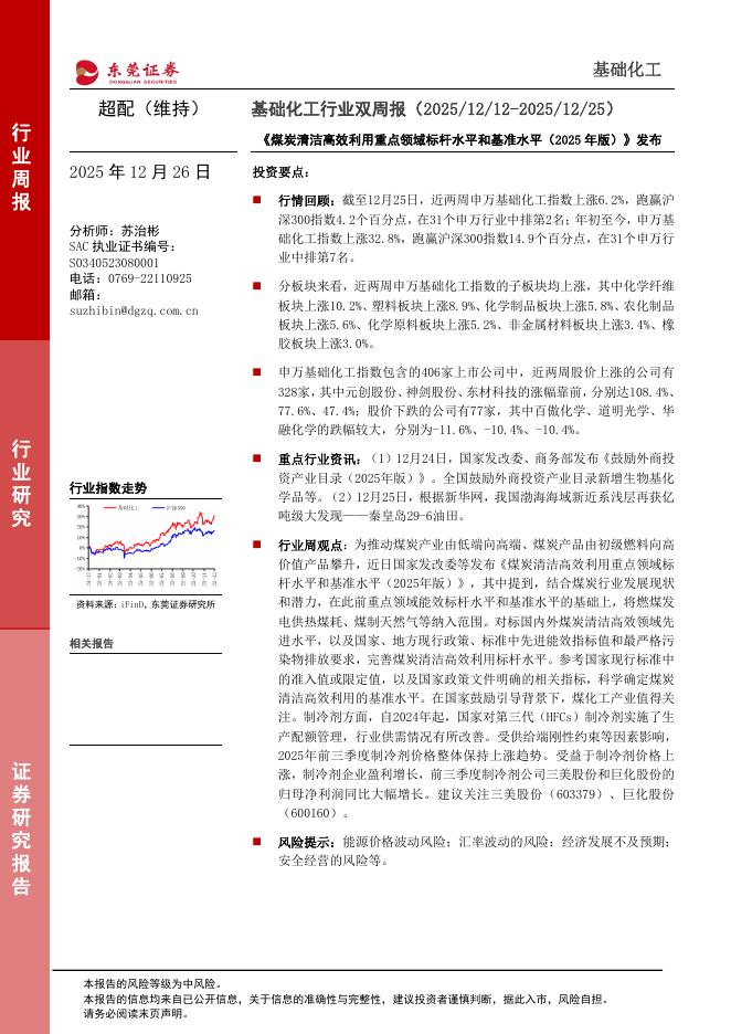 东莞证券:基础化工行业双周报:《煤炭清洁高效利用重点领域标杆水平和基准水平(2025年版)》发布.pdf