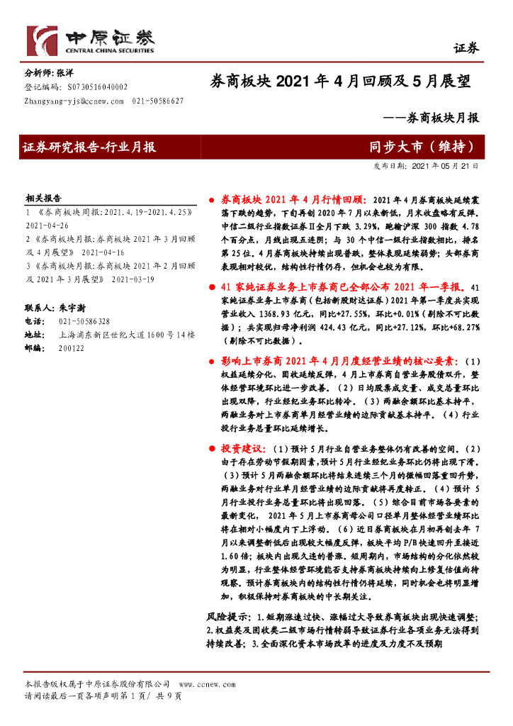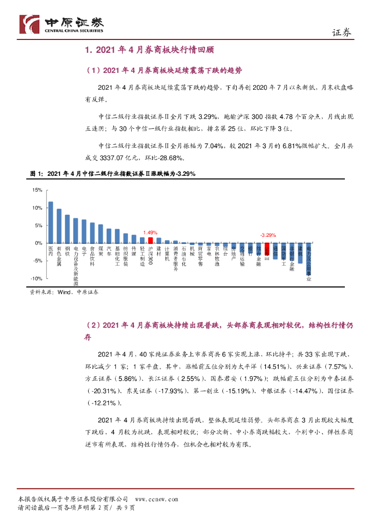 中原证券:券商板块月报:券商板块2021年4月回顾及5月展望.pdf