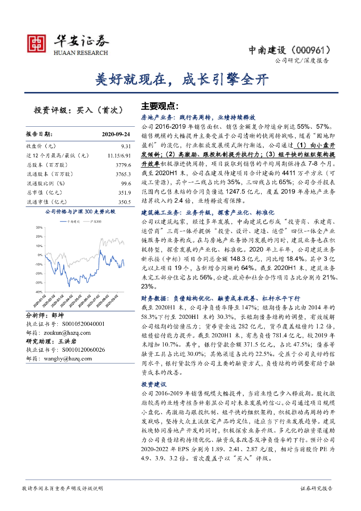 华安证券:中南建设(000961)-美好就现在,成长引擎全开.pdf