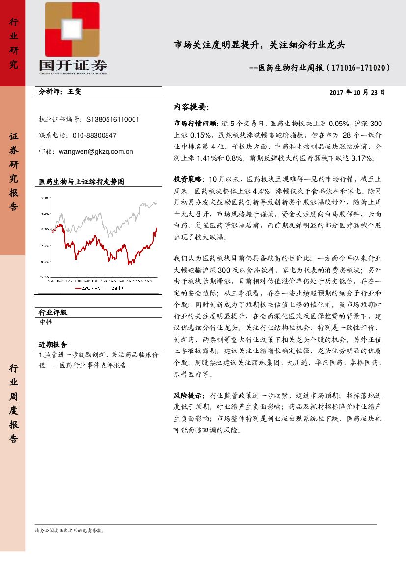 国开证券:医药生物行业周报:市场关注度明显提升,关注细分行业龙头.pdf