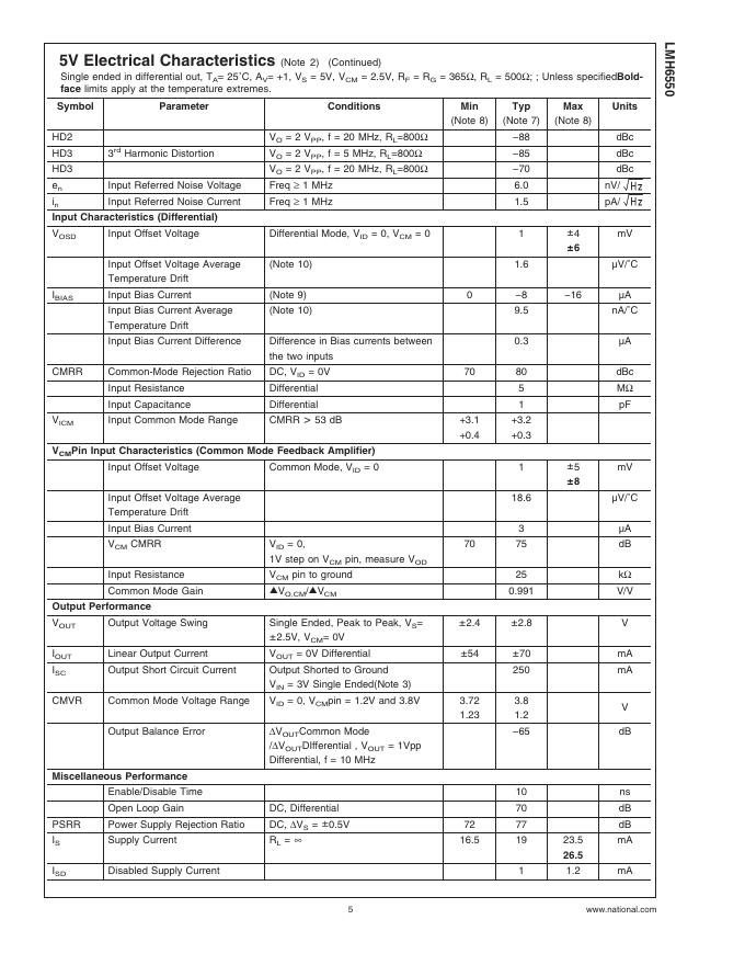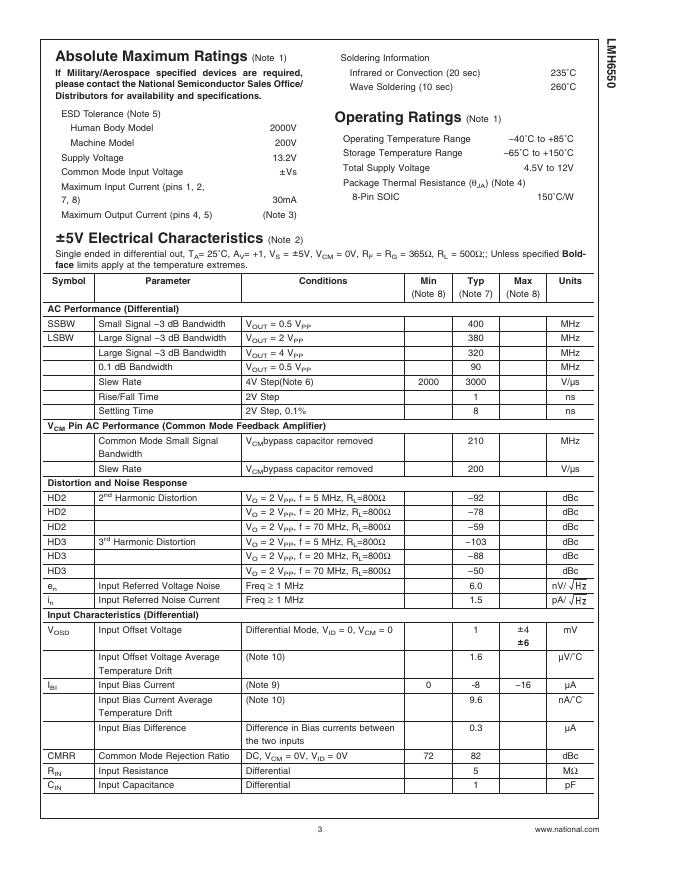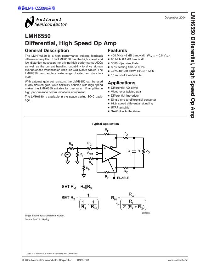 National Semiconductor LMH6550 Differential, High Speed Op Amp 数据手册.pdf