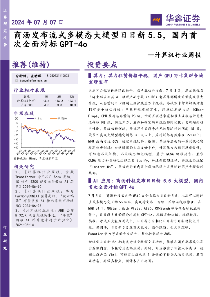 华鑫证券:计算机行业周报:商汤发布流式多模态大模型日日新5.5,国内首次全面对标GPT-4o.pdf