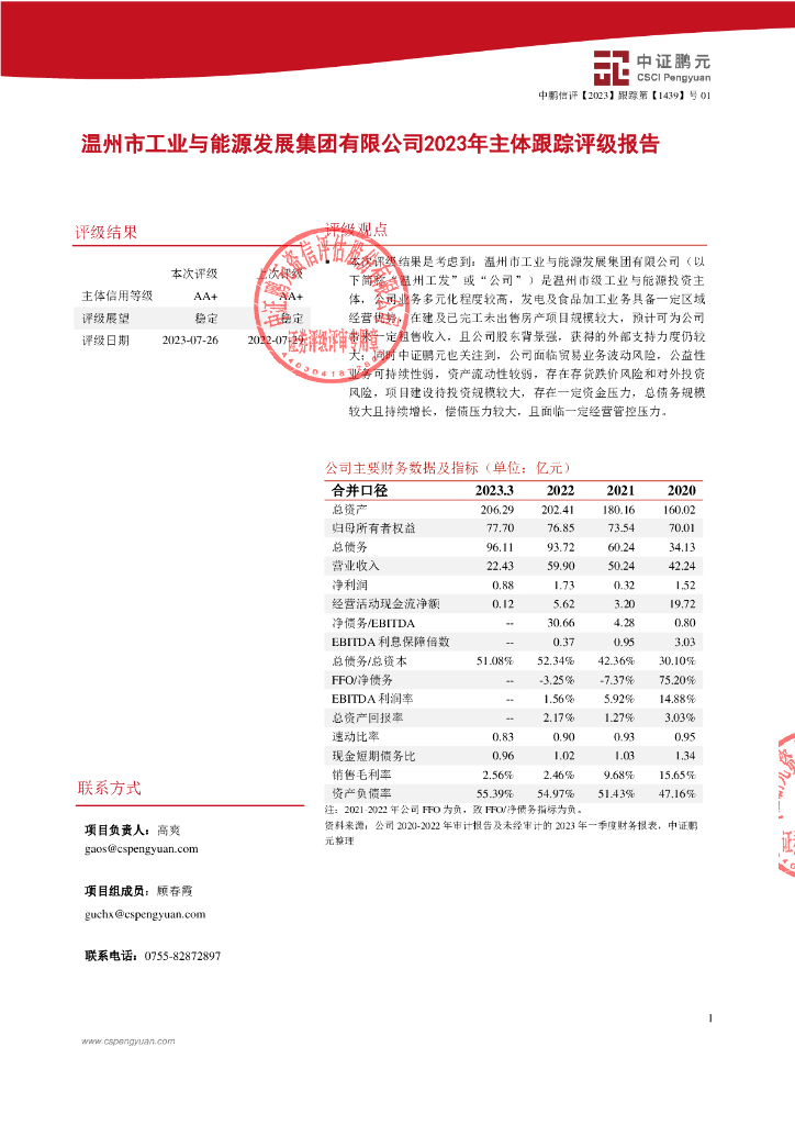 鹏元:温州市工业与能源发展集团有限公司2023年主体跟踪评级报告.pdf