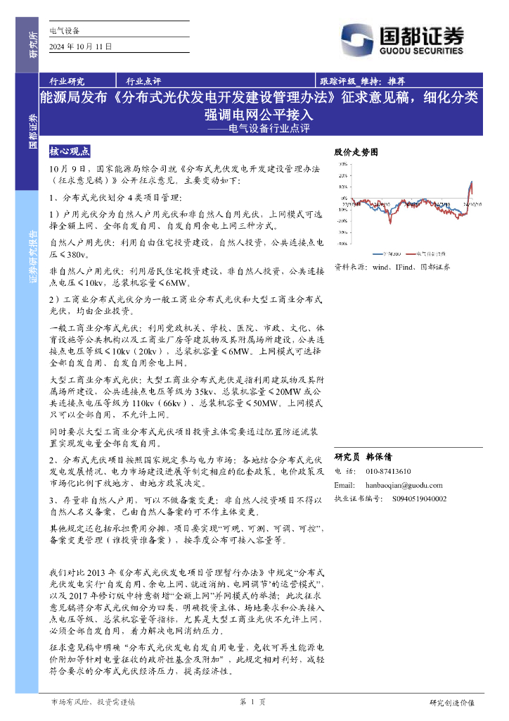 国都证券:电气设备行业点评:能源局发布《分布式光伏发电开发建设管理办法》征求意见稿,细化分类强调电网公平接入.pdf