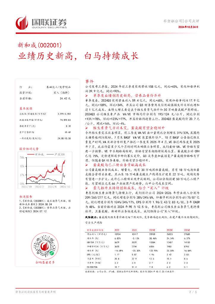 国联证券:新和成(002001)-业绩历史新高,白马持续成长.pdf