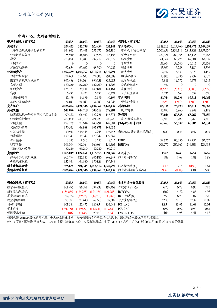 东吴证券:中国石化(600028)-2024年三季报点评:Q3布伦特油价走低,公司业绩承压.pdf