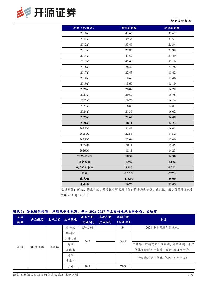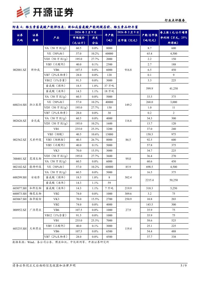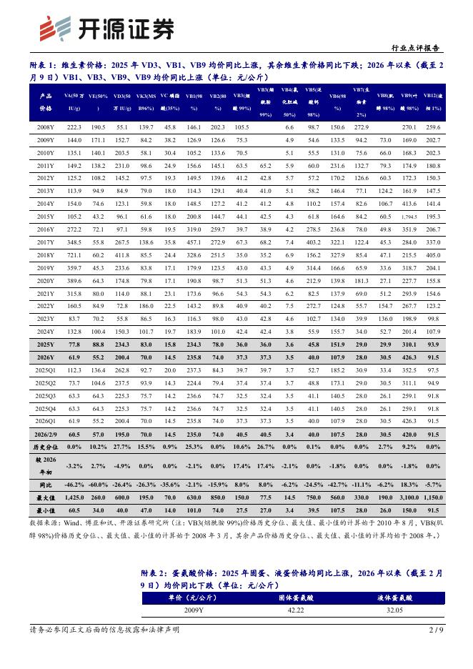 开源证券:维生素氨基酸行业点评报告:成本支撑、需求稳增,蛋氨酸、VE价格底部反弹.pdf