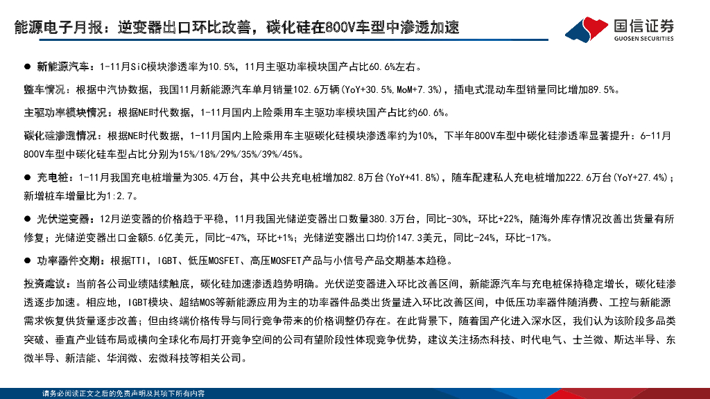 国信证券:能源电子月报:逆变器出口环比改善,碳化硅在800V车型中渗透加速.pdf
