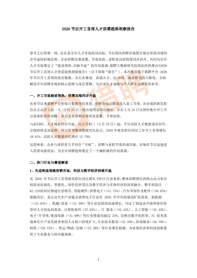 WisestTalent:2026年节后开工首周人才供需趋势洞察报告.pdf