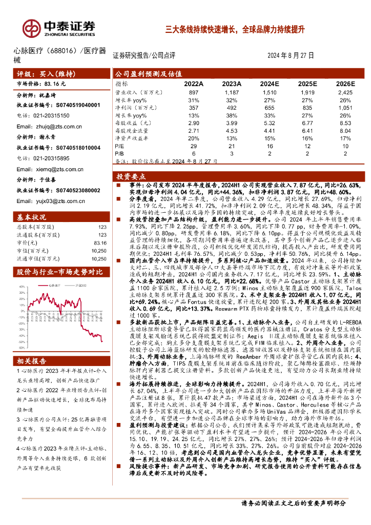 中泰证券:心脉医疗(688016)-三大条线持续快速增长,全球品牌力持续提升.pdf