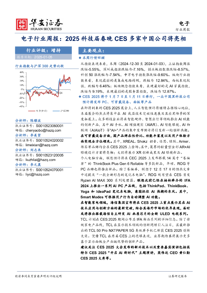华安证券:电子行业周报:2025科技界春晚CES多家中国公司将亮相.pdf