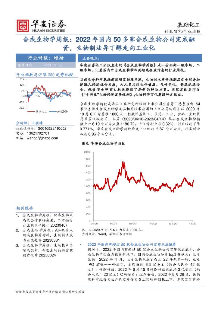 华安证券:合成生物学周报:2022年国内50多家合成生物公司完成融资,生物制法异丁醇走向工业化.pdf